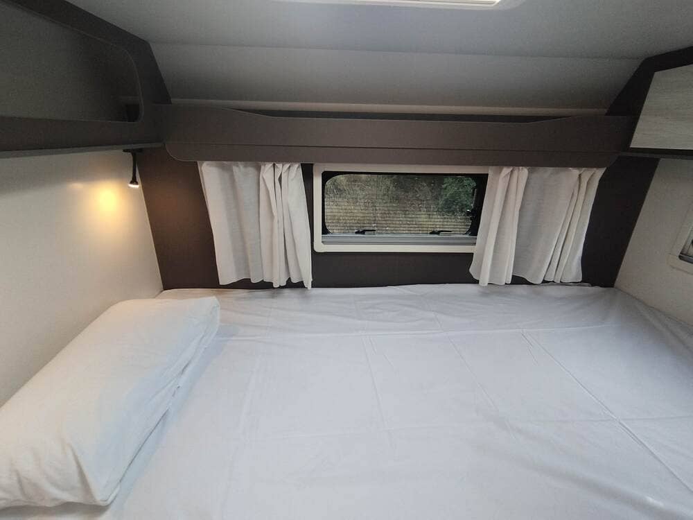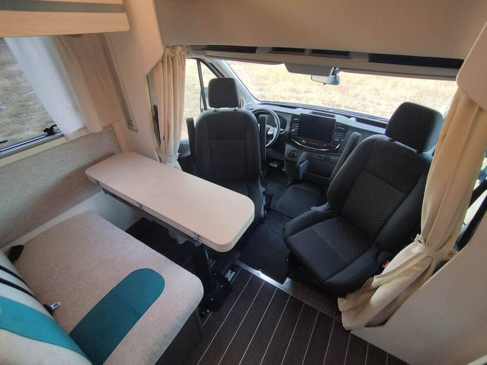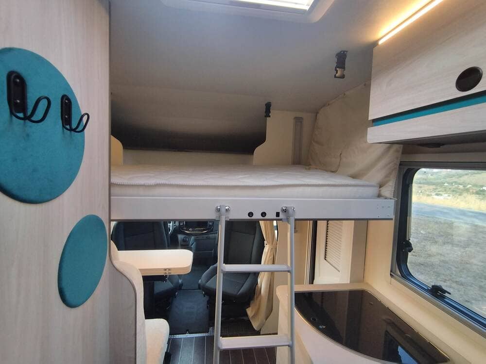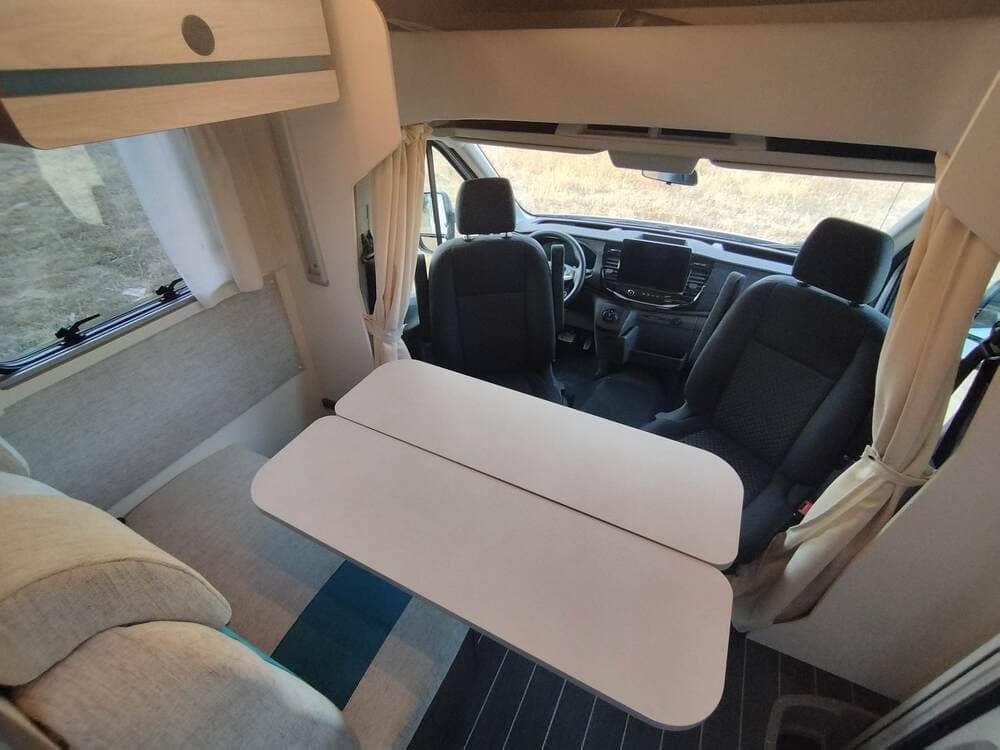 Autocaravana perfilada con solo 6m de largo. Capacidad para 3 personas de noche y práctico garaje.